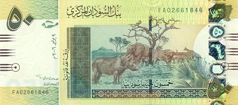 Суданский фунт. Купюра номиналом в 50 SDG, реверс.