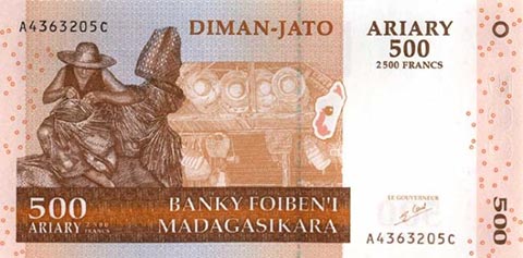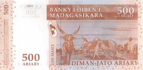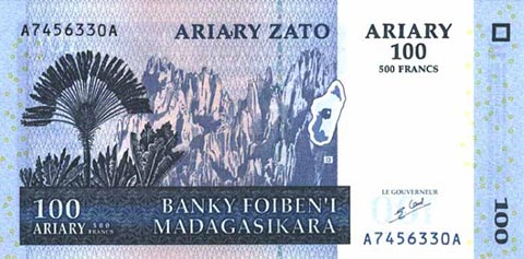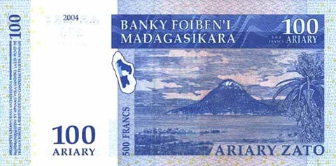 Малагасийский ариари. Купюра номиналом в 500 MGA, реверс.