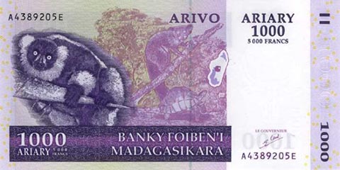 Малагасийский ариари. Купюра номиналом в 1000 MGA, аверс.