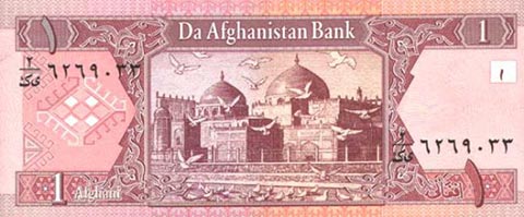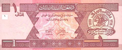 Афганский афгани. Купюра номиналом в 1 AFN, реверс.