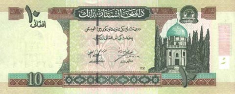 Афганский афгани. Купюра номиналом в 10 AFN, реверс.