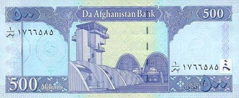 Афганский афгани. Купюра номиналом в 500 AFN, реверс.