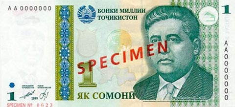 Таджикский сомони. Купюра номиналом в 1 TJS, аверс.