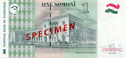 Таджикский сомони. Купюра номиналом в 1 TJS, реверс.