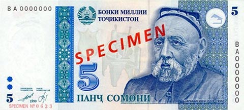 Таджикский сомони. Купюра номиналом в 5 TJS, аверс.