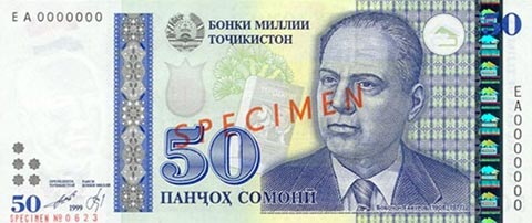 Таджикский сомони. Купюра номиналом в 50 TJS, аверс.