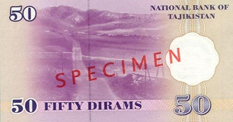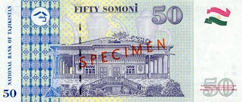 Таджикский сомони. Купюра номиналом в 50 TJS, реверс.