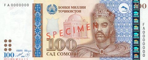Таджикский сомони. Купюра номиналом в 100 TJS, аверс.