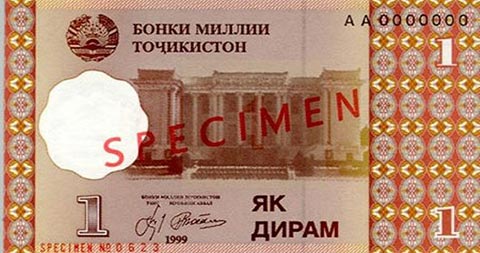 Таджикский сомони. Купюра номиналом в 1 Deram, аверс.