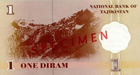 Таджикский сомони. Купюра номиналом в 1 Deram, реверс.