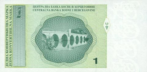 Конвертируемая марка. Купюра номиналом в 1 BAM, реверс.