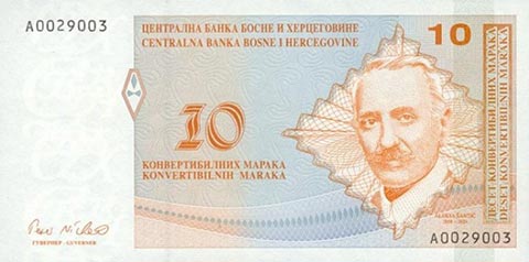 Конвертируемая марка. Купюра номиналом в 10 BAM, аверс.