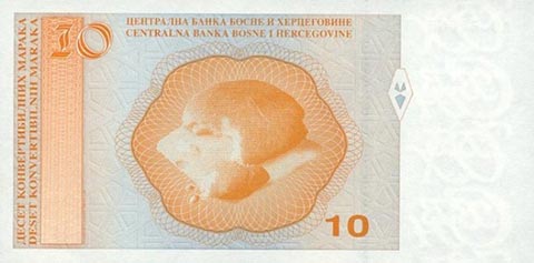 Конвертируемая марка. Купюра номиналом в 10 BAM, реверс.