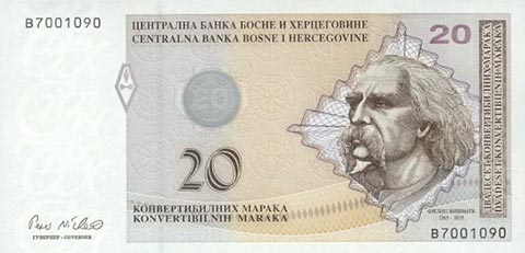 Конвертируемая марка. Купюра номиналом в 20 BAM, аверс.