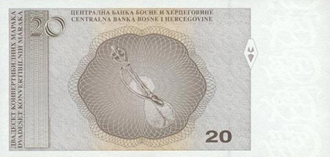 Конвертируемая марка. Купюра номиналом в 20 BAM, реверс.