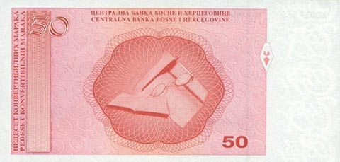 Конвертируемая марка. Купюра номиналом в 50 BAM, реверс.