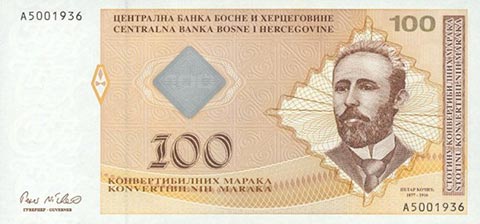 Конвертируемая марка. Купюра номиналом в 100 BAM, аверс.