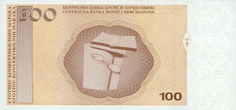 Конвертируемая марка. Купюра номиналом в 100 BAM, реверс.
