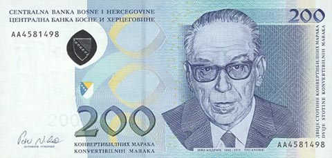 Конвертируемая марка. Купюра номиналом в 200 BAM, аверс.