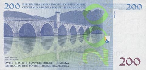 Конвертируемая марка. Купюра номиналом в 200 BAM, реверс.