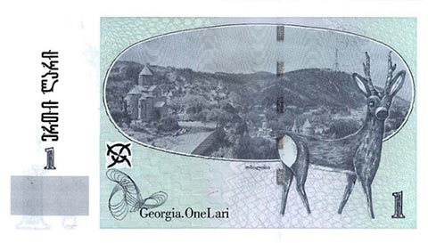 Грузинский лари. Купюра номиналом в 1 GEL, реверс.