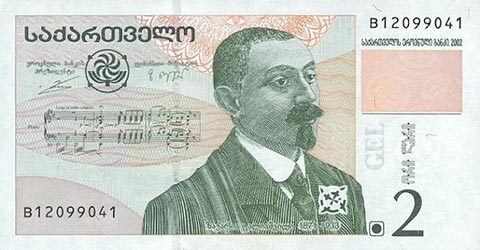 Грузинский лари. Купюра номиналом в 2 GEL, аверс.