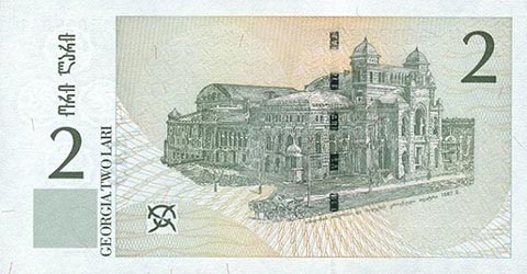 Грузинский лари. Купюра номиналом в 2 GEL, реверс.