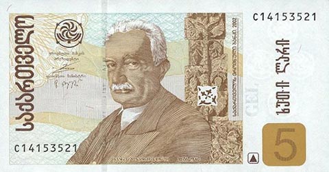 Грузинский лари. Купюра номиналом в 5 GEL, аверс.
