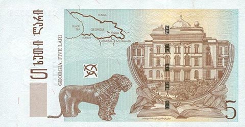 Грузинский лари. Купюра номиналом в 5 GEL, реверс.