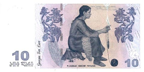 Грузинский лари. Купюра номиналом в 10 GEL, реверс.