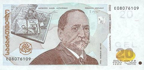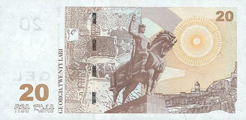 Грузинский лари. Купюра номиналом в 20 GEL, реверс.