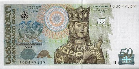 Грузинский лари. Купюра номиналом в 50 GEL, аерс.