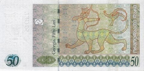 Грузинский лари. Купюра номиналом в 50 GEL, реверс.
