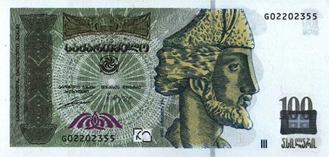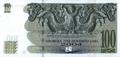 Грузинский лари. Купюра номиналом в 100 GEL, реверс.