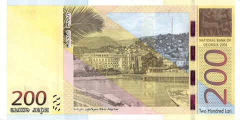 Грузинский лари. Купюра номиналом в 200 GEL, реверс.