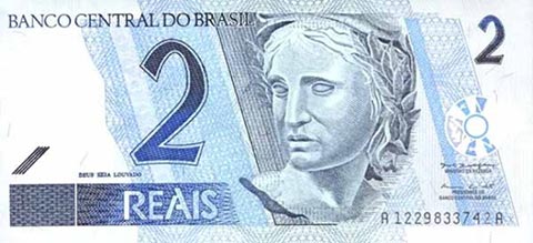 Бразильский реал. Купюра номиналом в 2 BRL, аверс.