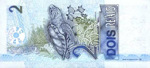 Бразильский реал. Купюра номиналом в 2 BRL, реверс.