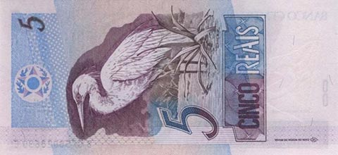 Бразильский реал. Купюра номиналом в 5 BRL, реверс.