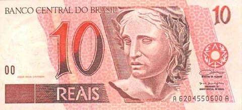 Бразильский реал. Купюра номиналом в 10 BRL, аверс.