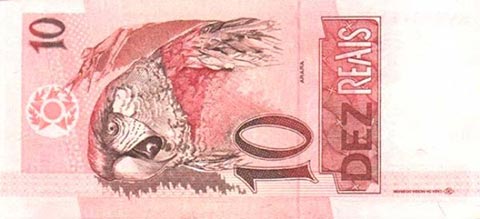 Бразильский реал. Купюра номиналом в 10 BRL, реверс.