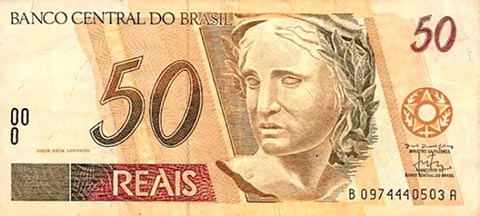 Бразильский реал. Купюра номиналом в 50 BRL, аверс.