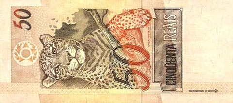 Бразильский реал. Купюра номиналом в 50 BRL, реверс.