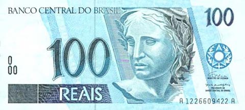 Бразильский реал. Купюра номиналом в 100 BRL, аверс.