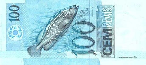 Бразильский реал. Купюра номиналом в 100 BRL, реверс.